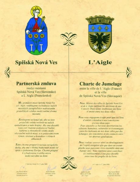 Prvé kroky spolupráce a partnerských kontaktov s mestom L´Aigle začali prostredníctvom partnerského mesta Clausthal-Zellerfeld, ktoré bolo dlhoročným partnerom francúzskeho mesta ešte pred podpisom našej zmluvy s mestom L´Aigle dňa 1. júna 2000 v L´Aigli. Týmto dňom sa tak spečatilo tzv. trojpartnerstvo miest - Spišská Nová Ves - L´Aigle - Clausthal-Zellerfeld. Partnerská spolupráca s mestom L´Aigle je v súčasnosti zameraná hlavne do oblasti školstva (študentské výmenné pobyty), cestovného ruchu, samosprávneho riadenia a i.