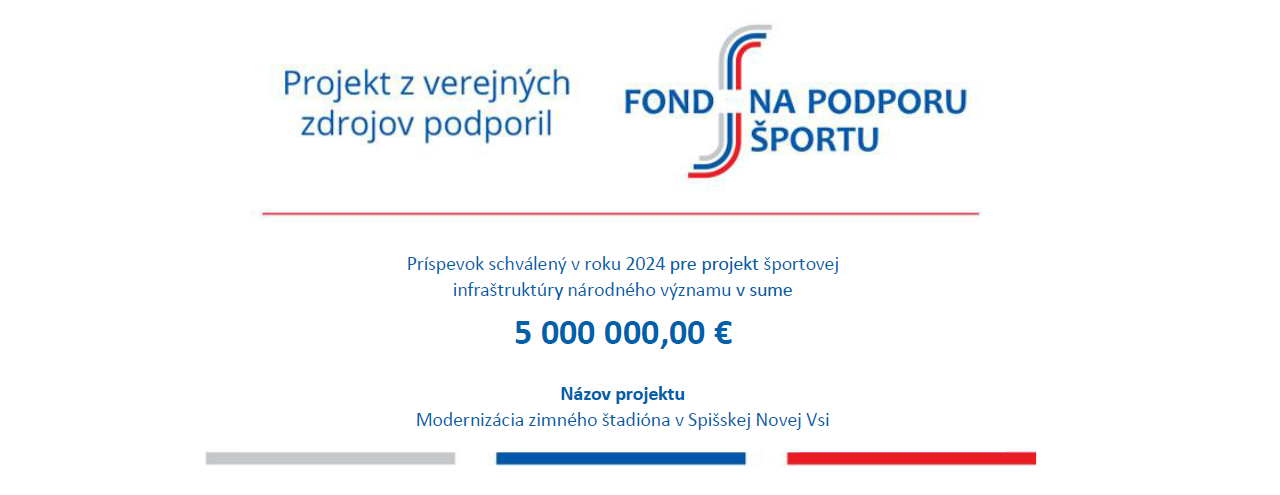Mesto Spišská Nová Ves predložilo v roku 2024 na Fond na podporu športu žiadosť o zaradenie projektu "Modernizácia zimného štadióna v Spišskej Novej Vsi" medzi športovú infraštruktúru národného významu. Následne v decembri 2024 Správna rada schválila projekt ako infraštruktúru národného významu a zároveň schválila príspevok vo výške 5 000 000 €.